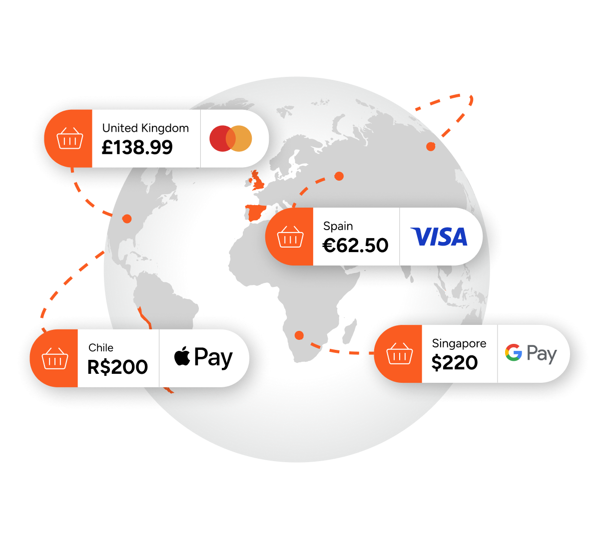 With the ability to accept Visa, Mastercard, Apple Pay and Google Pay payments from any country, in any currency. Expanding into new markets and growing globally has never been easier!
